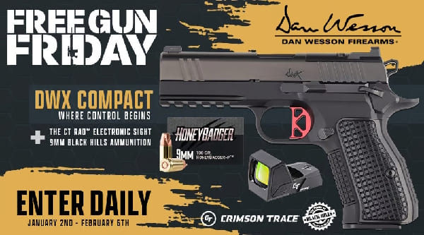 Enter to win a Dan Wesson DWX Compact Pistol, CT RAD Red Dot + Ammo Giveaway, valued at $3,763. Ends 2/6/26.