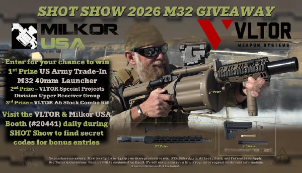 Enter to win a Milkor USA M32 40mm Grenade Launcher w/VFG + Optic Giveaway (3 Winners), valued at $15,000. Ends 2/9/26.