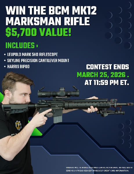 Enter to win a BCM MK12 Marksman Rifle, Leupold Mark5HD Scope + Gear Giveaway, valued at $5,700. Ends 3/25/26.