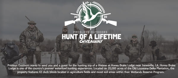 Enter to win a Waterfowl Hunt Giveaway (10 Winners), valued at $7,500. Ends 8/16/20.