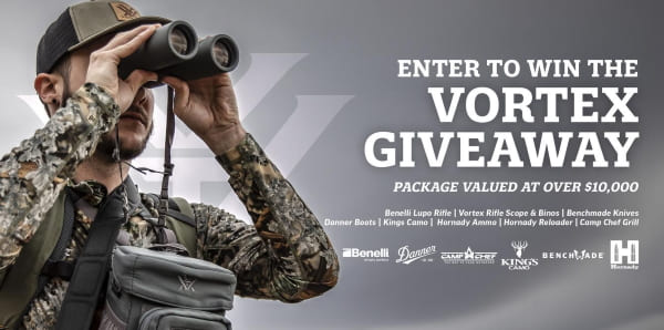 Enter to win a Benelli Lupo Rifle, Vortex Binos, Rangefinder + Scope + Benchmade Knives Package Giveaway, valued at $10,000. Ends 8/2/20.