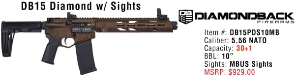 Enter to win a Diamondback DB-15 5.56 AR Pistol Giveaway, valued at $929. Ends 7/11/20.