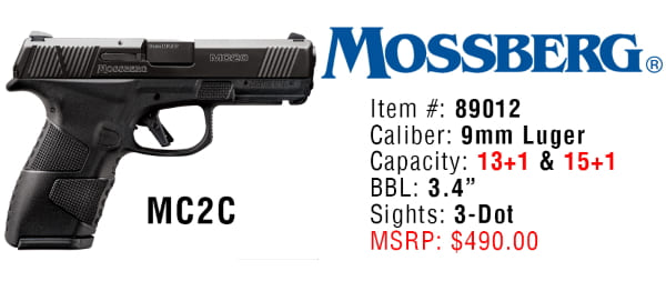 Enter to win a Mossberg MC2C 9mm Pistol Giveaway, valued at $490. Ends 6/27/20.