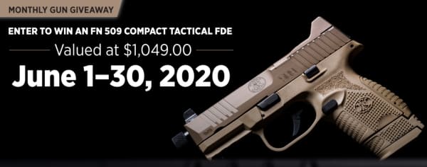 Enter to win a FN 509 Compact Tactical FDE Pistol Giveaway, valued at $1,049. Ends 6/30/20.