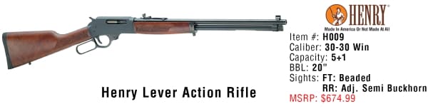 Enter to win a Henry .30-30 Lever Action Rifle Giveaway, valued at $675. Ends 5/30/20.