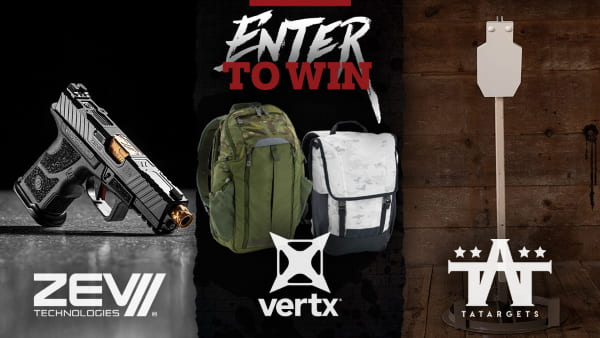 Enter to win a Zev Tech O.Z-9 Pistol, VertX Packs + Steel Target Package Giveaway, valued at $2,500. Ends 6/12/20.