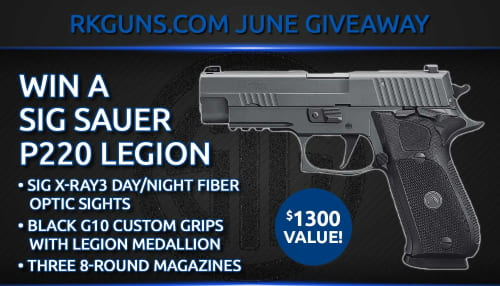 Enter to win a Sig Sauer P220 Legion Giveaway, valued at $1,300. Ends 6/30/20.