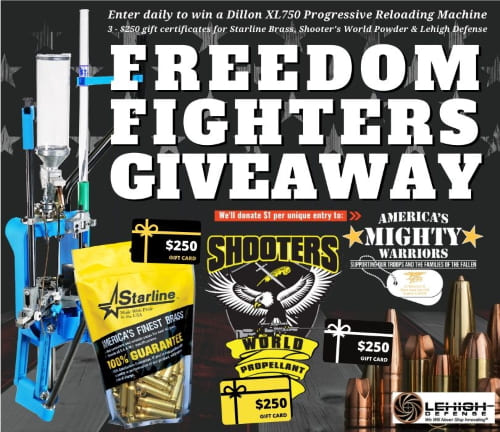 $250 gift certificates for Starline Brass, Shooter’s World Propellants, and Lehigh Defense