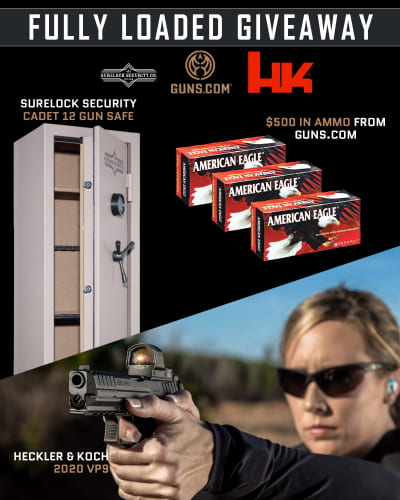 Enter to win a HK 2020 VP9 Pistol, Gun Safe + $500 Ammo Giveaway, valued at $1,800. Ends 4/30/20.