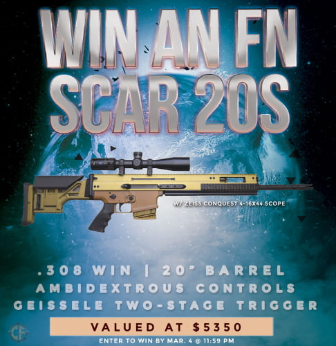 Enter to win a FN SCAR 20S .308 Rifle + Zeiss Conquest 4-16×44 Scope Giveaway, valued at $5,350. Ends 3/4/20.