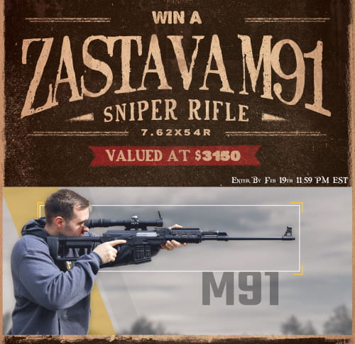 Enter to win a Zastava M91SR 7.62x54R Rifle Giveaway, valued at $3,150. Ends 2/19/20.