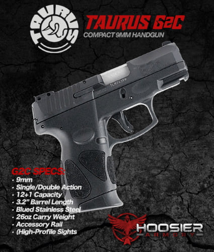 Enter to win a Taurus G2c 9mm Pistol Giveaway, valued at $249. Ends 2/21/20.