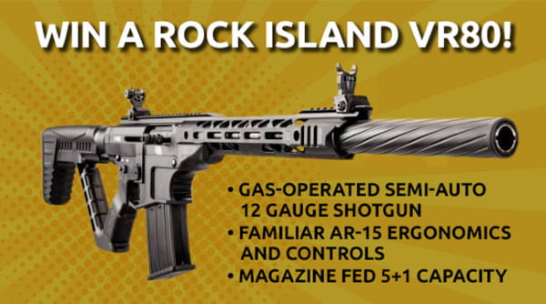 Enter to win a Rock Island VR80 Semi-Auto Mag Fed 12 Ga Shotgun Giveaway, valued at $600. Ends 12/31/19.