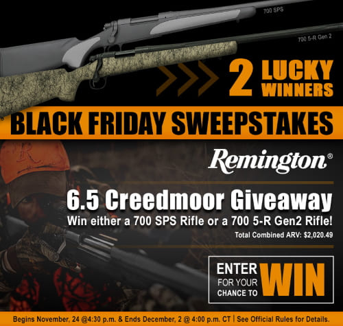 Enter to win a Remington 700 5-R Gen 2 Rifle or 700 SPS Rifle Giveaway (2 Winners), valued at $1,275. Ends 12/2/19.