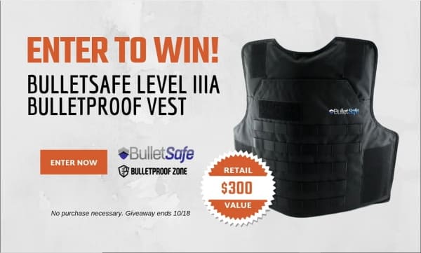 Enter to win a BulletSafe Level IIIA Bulletproof Vest Giveaway, valued at $300. Ends 10/18/19.