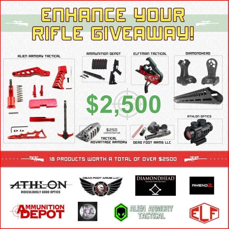 Enter to win a $2,500 AR-15 Accessories Giveaway. Ends 10/28/19.