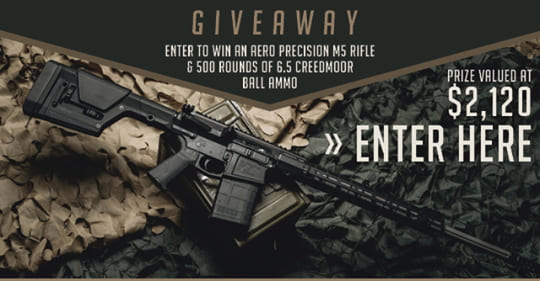 Enter to win a Aero Precision M5 6.5 Creedmoor Rifle + Ammo Giveaway, valued at $2,120. Ends 12/1/19.