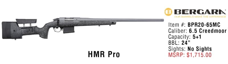 Enter to win a Bergara HMR Pro 6.5 Creedmoor Rifle Giveaway, valued at $1,715. Ends 9/28/19.