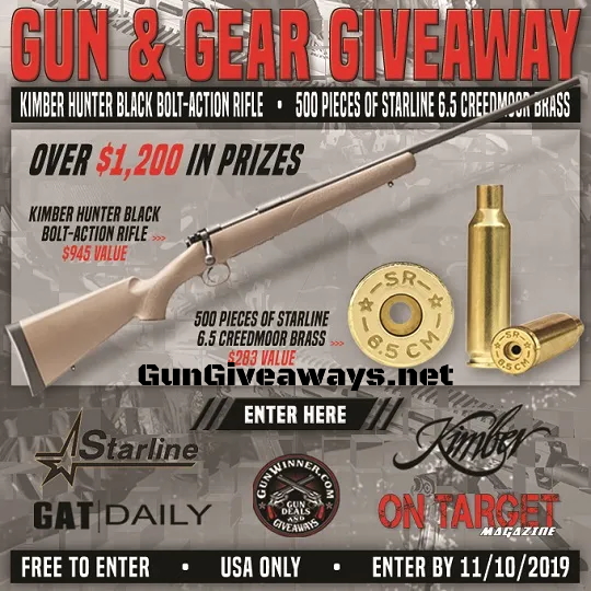 Enter to win a Kimber Hunter Black 6.5 Creedmoor Rifle Package Giveaway, valued at $1,228. Ends 11/10/19.