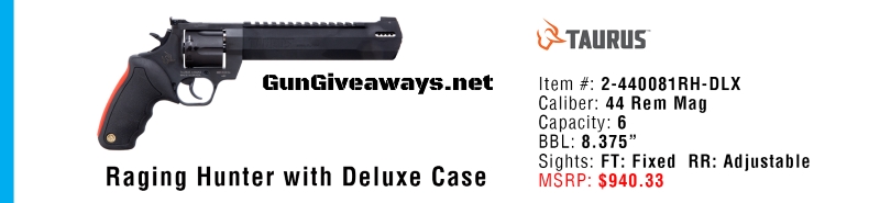 Enter to win a Taurus Raging Hunter .44 Rem Mag Revolver Giveaway, valued at $940. Ends 4/6/19.
