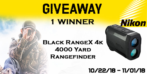Enter to win a Nikon Black RangeX 4k 4000 Yard Laser Rangefinder Giveaway, valued at $450. Ends 11/1/18.