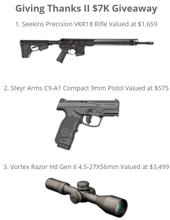 Enter to win a Seekins Precision VKR18 Rifle Package Giveaway, valued at $7,044. Ends 11/21/18.