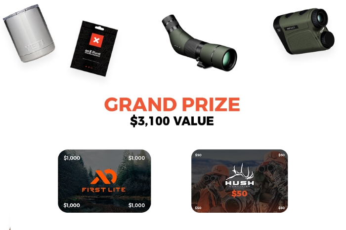 Enter to win a $3,100 Hunting Package Giveaway (8 Winners), valued at $3,100. Ends 10/31/18.