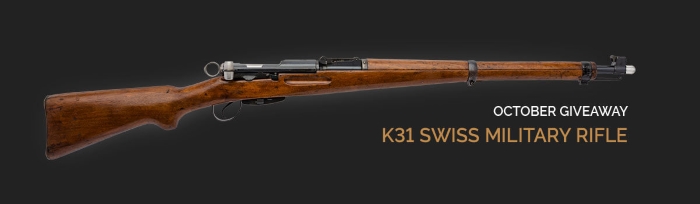 Enter to win a K31 Swiss Military Rifle Giveaway, valued at $695. Ends 10/31/18.