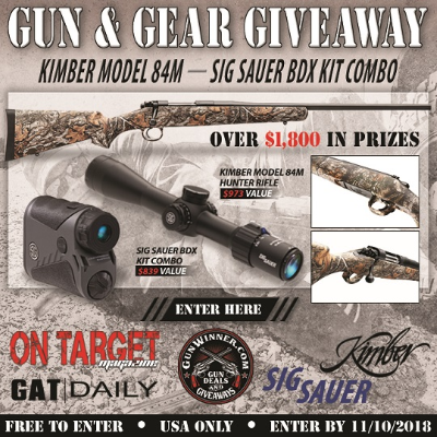 Enter to win a Kimber 84M Rifle Package Giveaway, valued at $1,800. Ends 11/10/18.