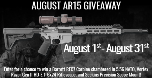 Enter to win a Barrett REC7 Carbine Rifle + Vortex Scope Giveaway, valued at $3,889. Ends 8/31/18.
