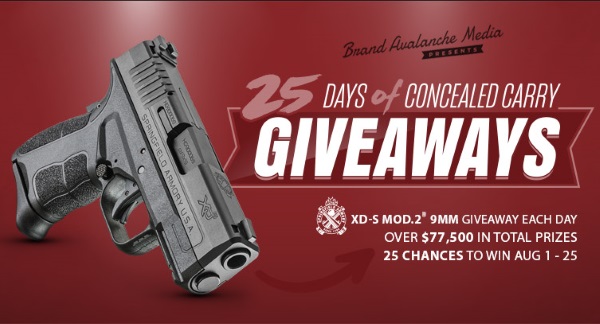 Enter to win a Springfield XDs Mod.2 9mm Pistol Package Giveaway (25 Winners/1 per day), valued at $3,100! Ends 8/25/18.